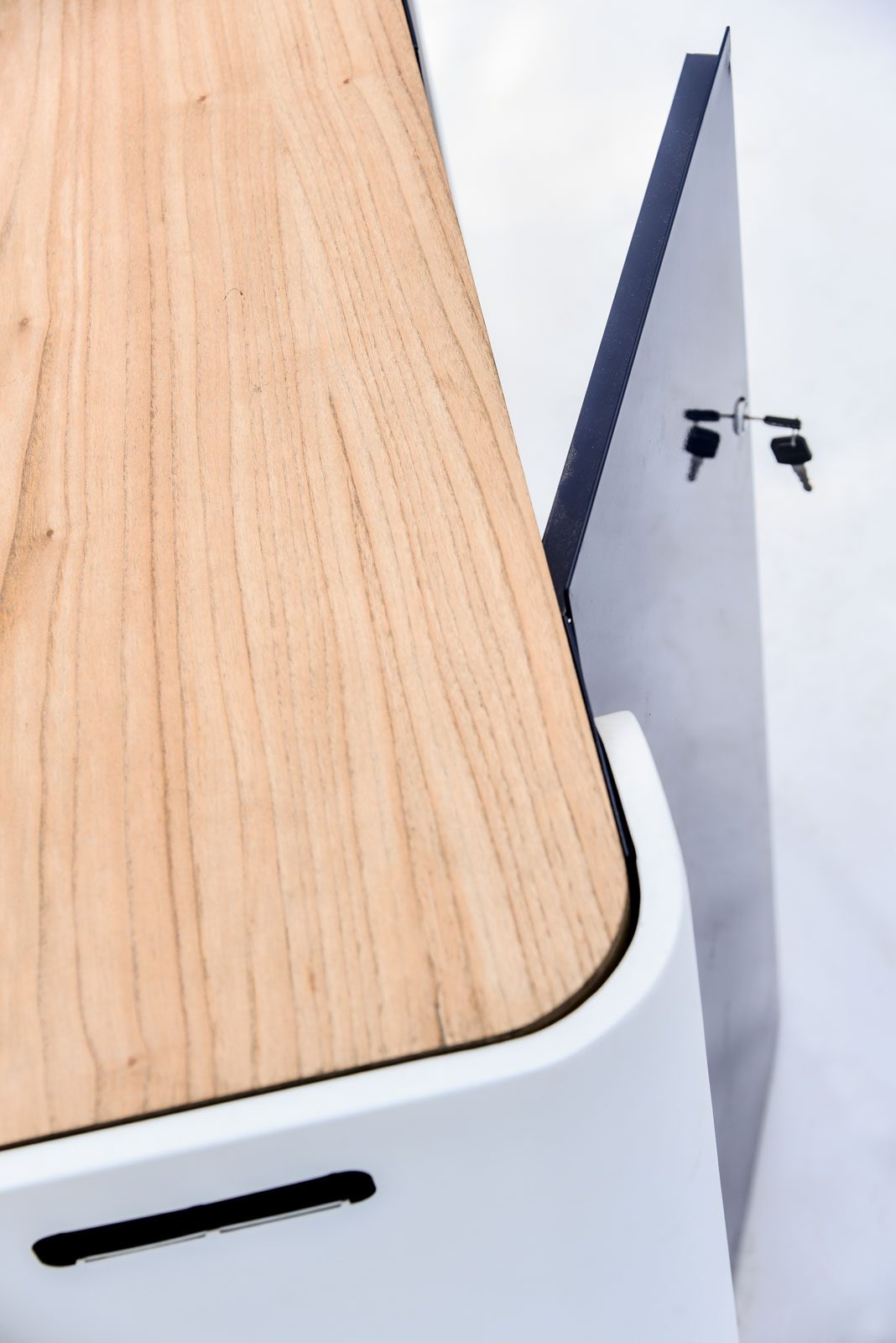 Mostrador atención con guardado y marca iluminada led; extensible de 1 a 1,6 metros.
