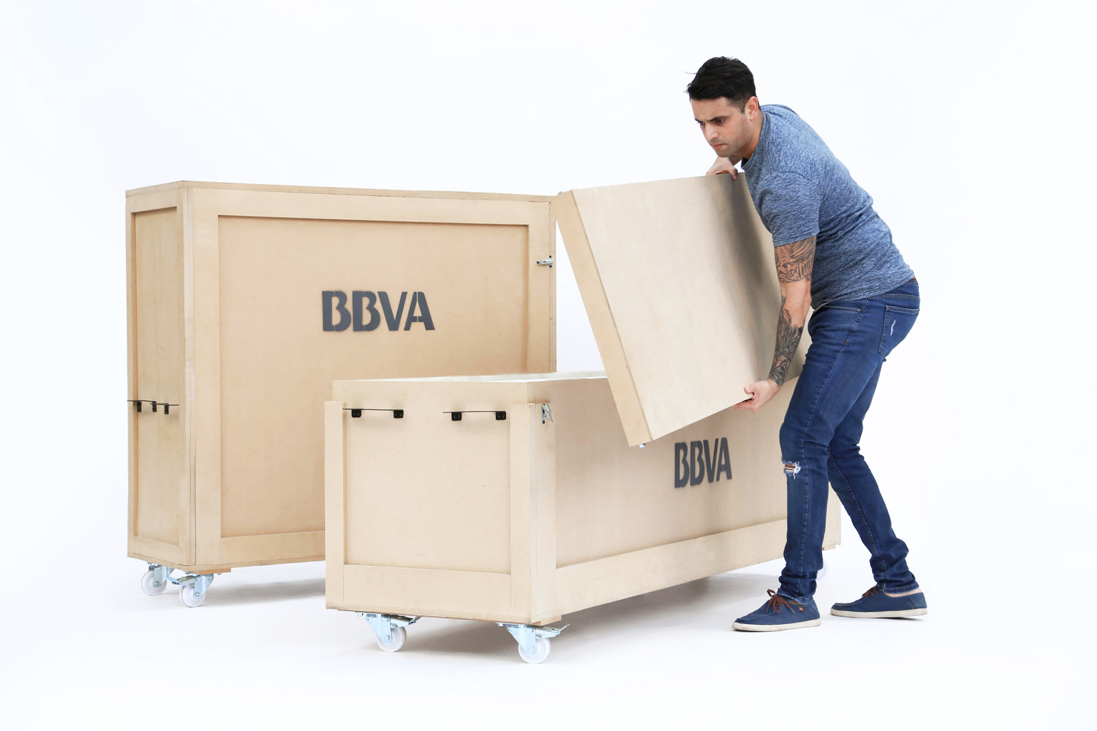 Transportabilidad en dos estuches de madera con protección y ruedas para su traslado.